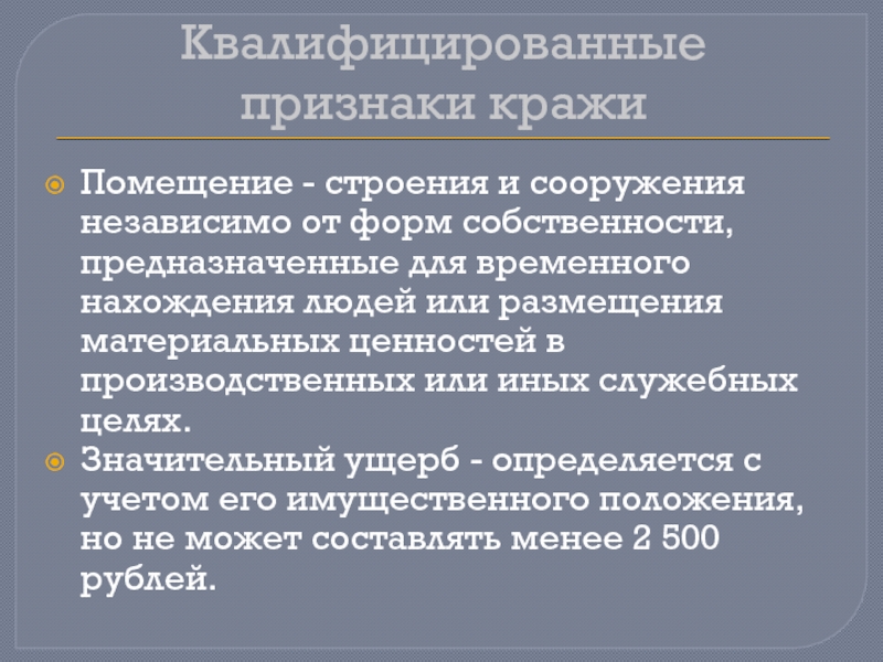 (Постановление Пленума ВС РФ № 29 от 27.12.2002 «О судебной практике по делам о краже, грабеже, разбое»)