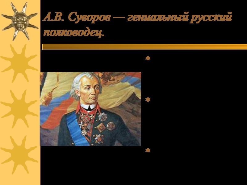 Слайд 9А.В. Суворов — гениальный русский полководец.