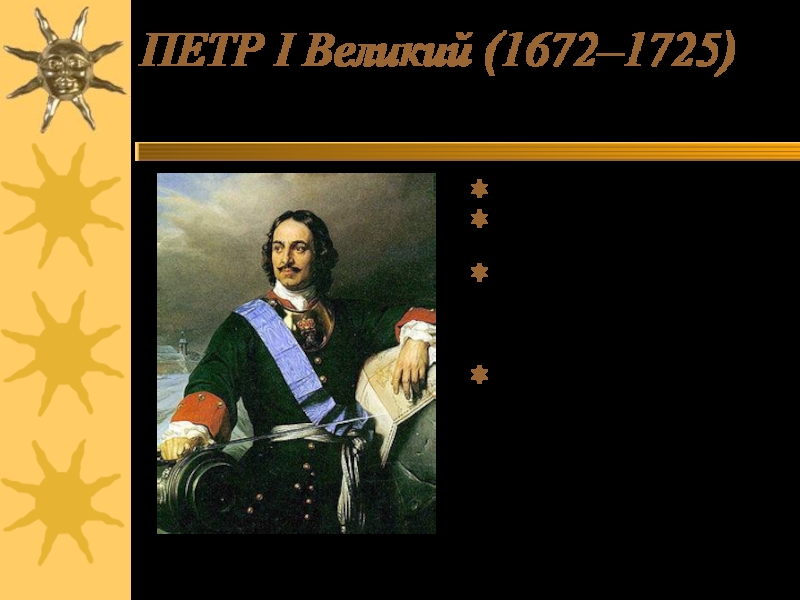 Слайд 3ПЕТР I Великий (1672–1725)