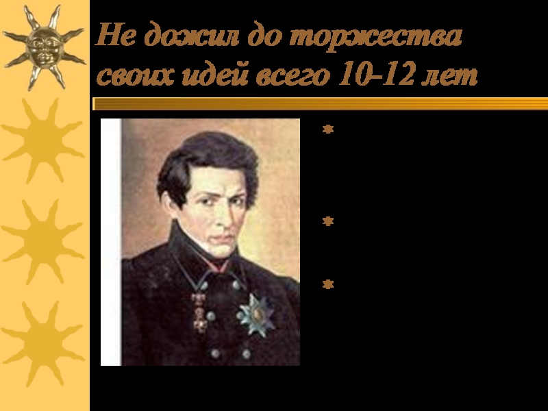 Слайд 29Не дожил до торжества своих идей всего 10-12 лет