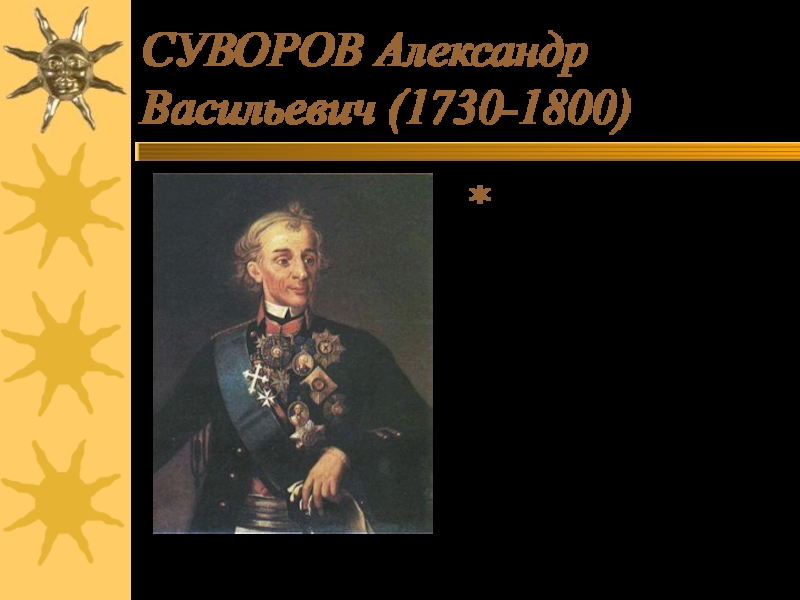Слайд 6СУВОРОВ Александр Васильевич (1730-1800)