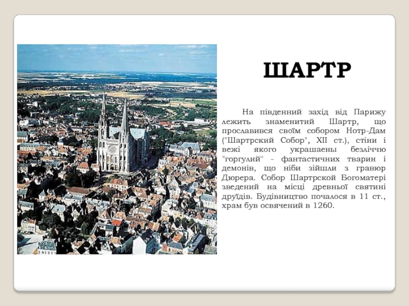 На південний захід від Парижу лежить знаменитий Шартр, що прославився