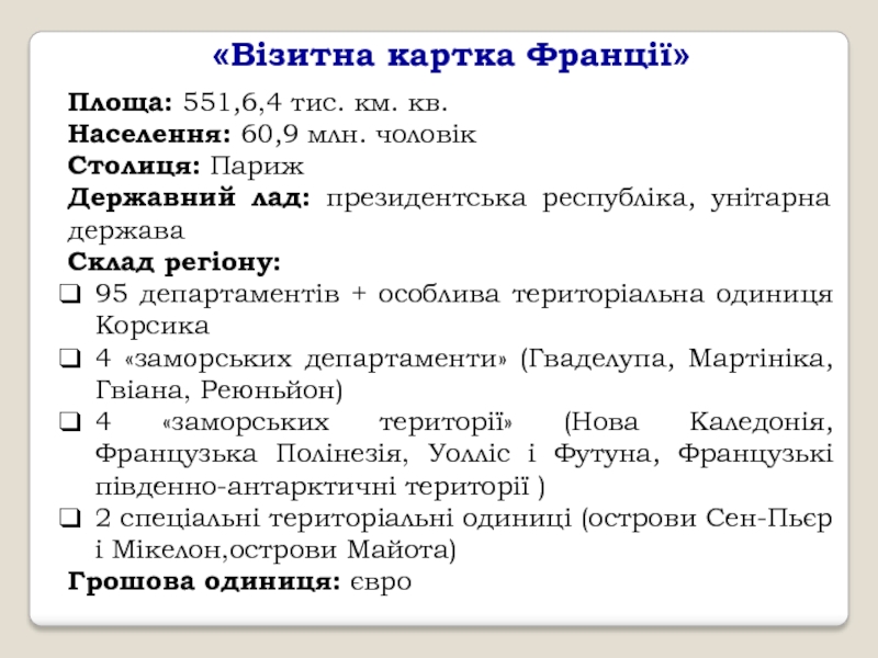 Слайд 5Франція - одна з найбільших європейських країн; вона розташована в