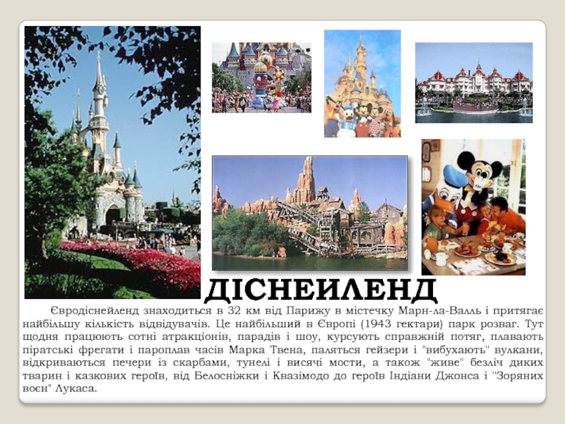 Євродіснейленд знаходиться в 32 км від Парижу в містечку Марн-ла-Валль