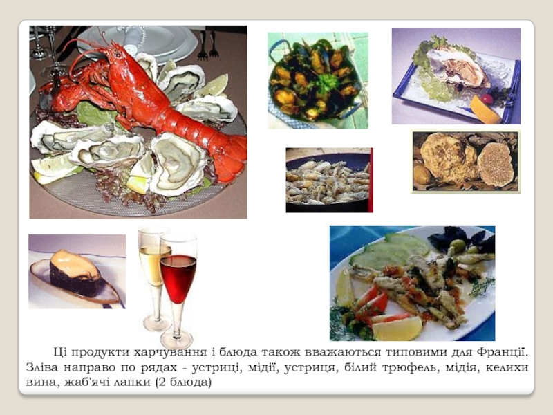 Слайд 30 Ці продукти харчування і блюда також вважаються типовими для Франції.