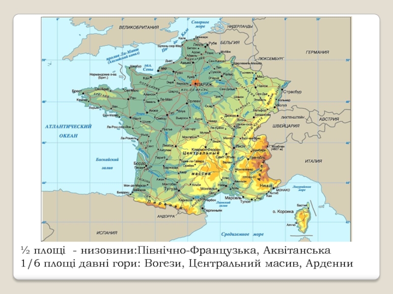 Слайд 6½ площі - низовини:Північно-Французька, Аквітанська