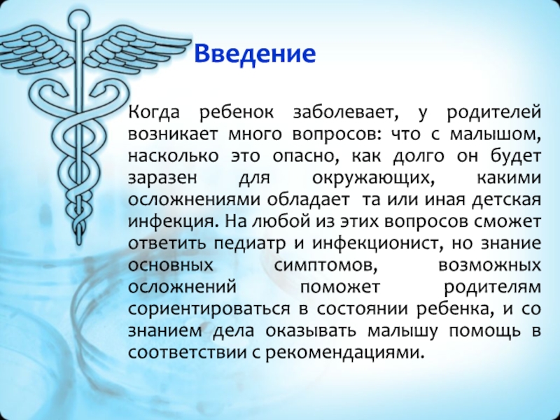 окружающих, какими осложнениями обладает та или иная детская инфекция. На любой из этих вопросов сможет ответить педиатр и инфекционист, но знание основных симптомов, возможных осложнений поможет родителям сориентироваться в состоянии ребенка, и со знанием дела оказывать малышу помощь в соответствии с рекомендациями.