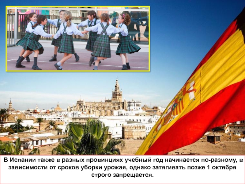 Слайд 11В Испании также в разных провинциях учебный год начинается по-разному,