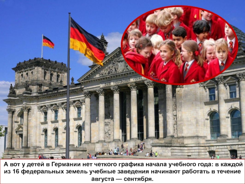 Слайд 7А вот у детей в Германии нет четкого графика начала