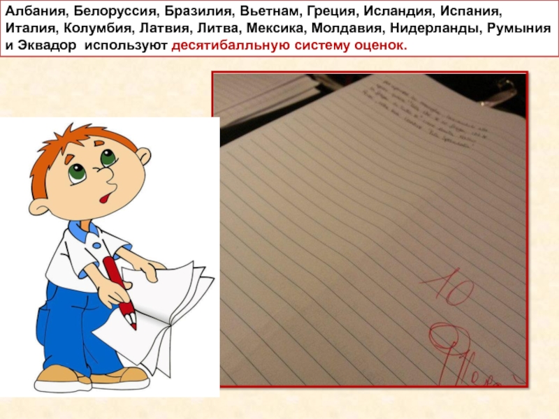 Литва, Мексика, Молдавия, Нидерланды, Румыния и Эквадор используют десятибалльную систему