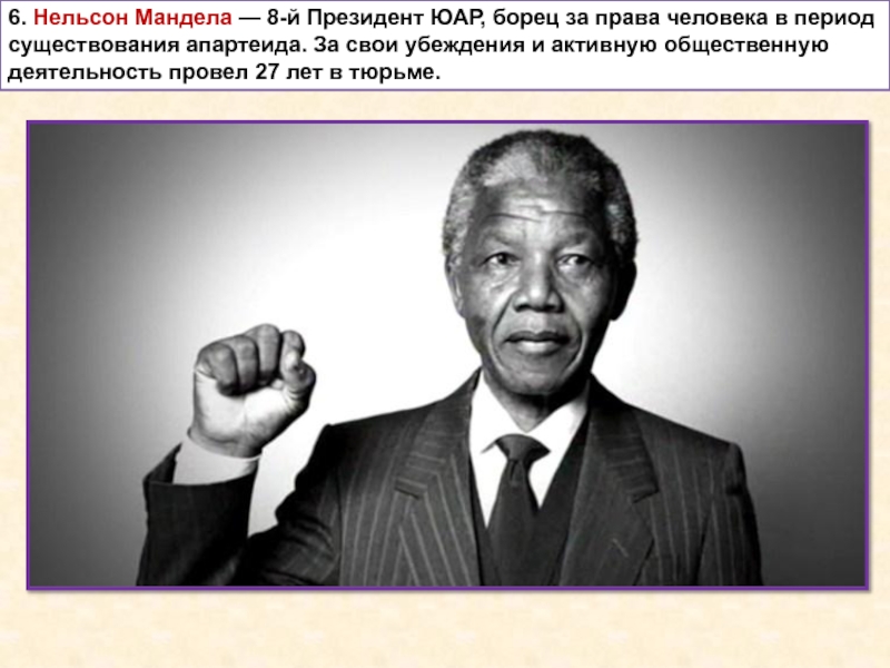 Слайд 556. Нельсон Мандела — 8-й Президент ЮАР, борец за права человека
