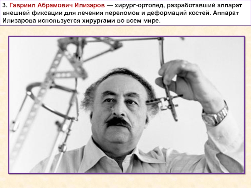 Слайд 523. Гавриил Абрамович Илизаров — хирург-ортопед, разработавший аппарат внешней фиксации для
