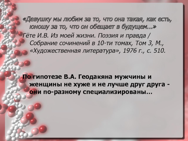 По гипотезе В.А. Геодакяна мужчины и женщины не хуже и не лучше друг друга - они по-разному специализированы…