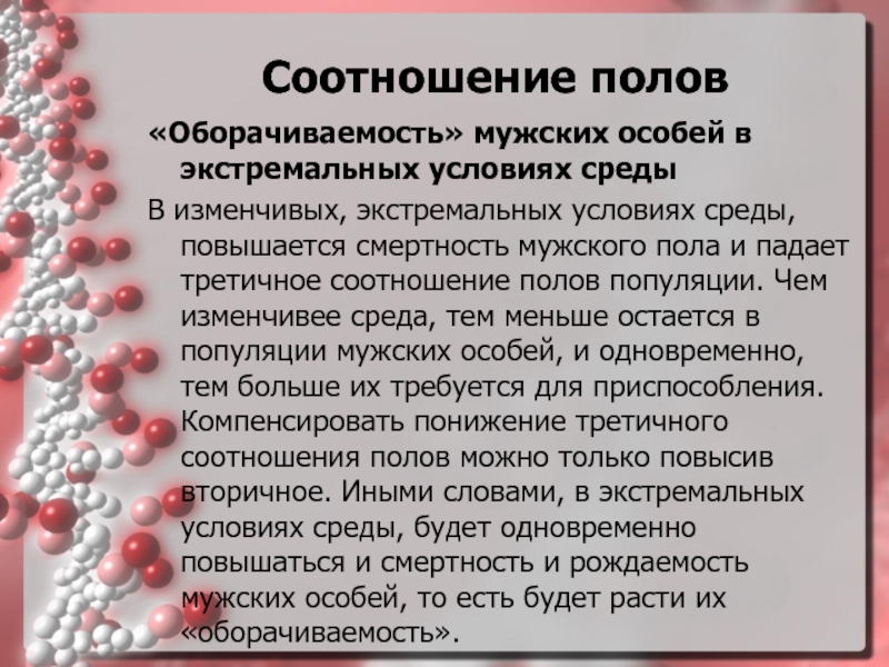 условиях среды, повышается смертность мужского пола и падает третичное соотношение