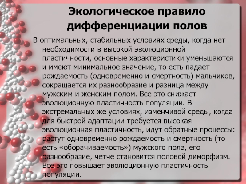 Слайд 14Экологическое правило дифференциации полов