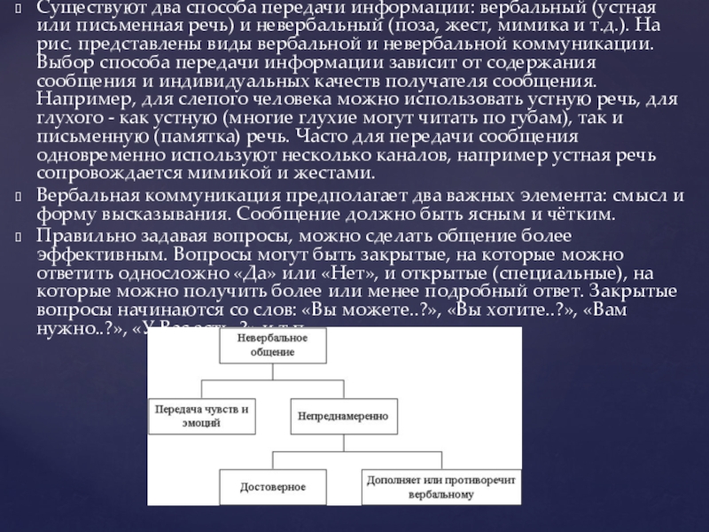 Слайд 6Существуют два способа передачи информации: вербальный (устная или письменная речь)