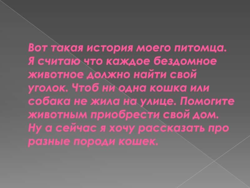 Слайд 8Вот такая история моего питомца. Я считаю что каждое бездомное