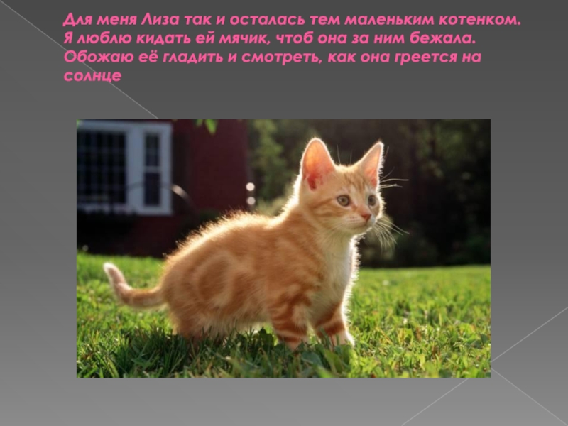 Слайд 6Для меня Лиза так и осталась тем маленьким котенком. Я