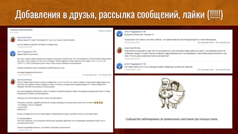 Слайд 5Добавления в друзья, рассылка сообщений, лайки (!!!!!)