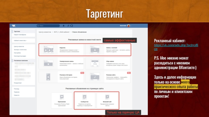 Рекламный кабинет: https://vk.com/ads.php?act=office