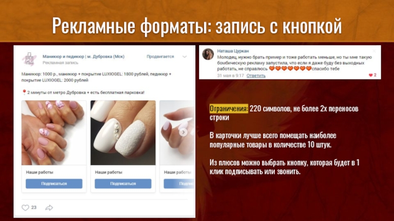 220 символов или нужно обязательно вшить ссылку в рекламный текст