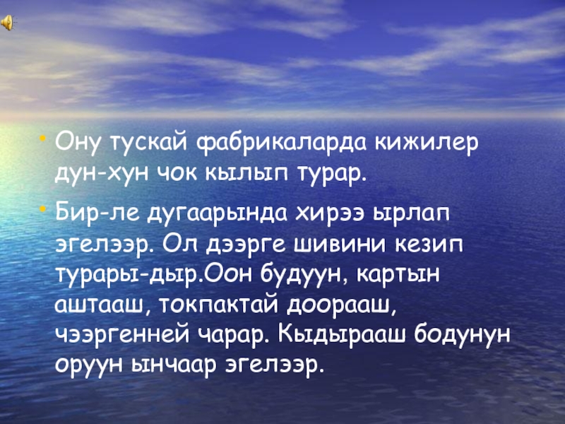 Слайд 7Ону тускай фабрикаларда кижилер дун-хун чок кылып турар.