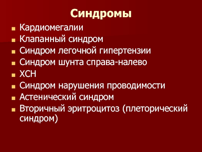 ствола легочной артерии, недостаточность клапана легочной артерии, трикуспидального клапана. Синдром
