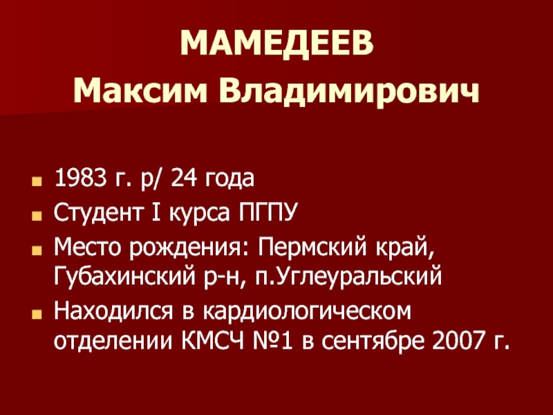 рождения: Пермский край, Губахинский р-н, п.Углеуральский