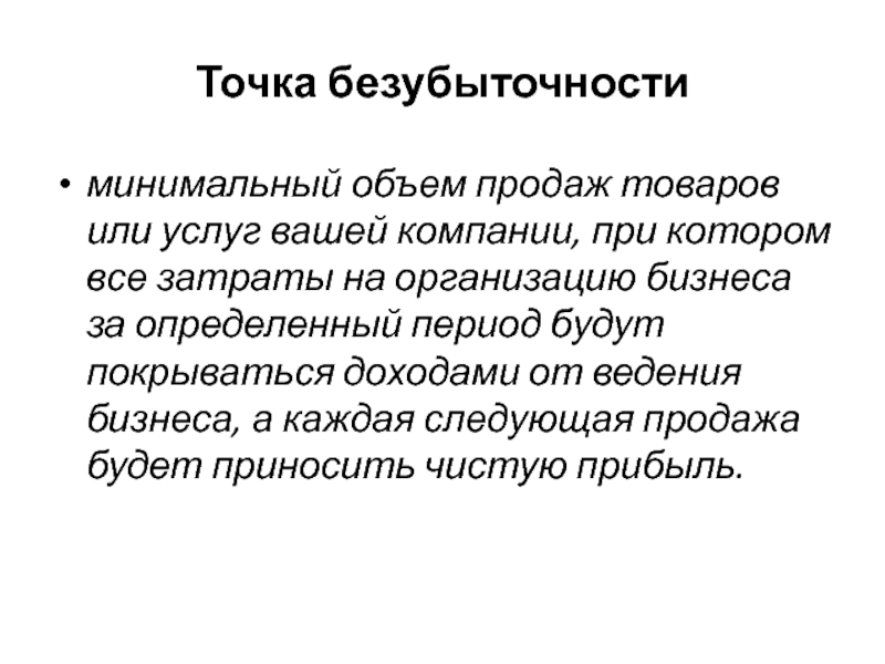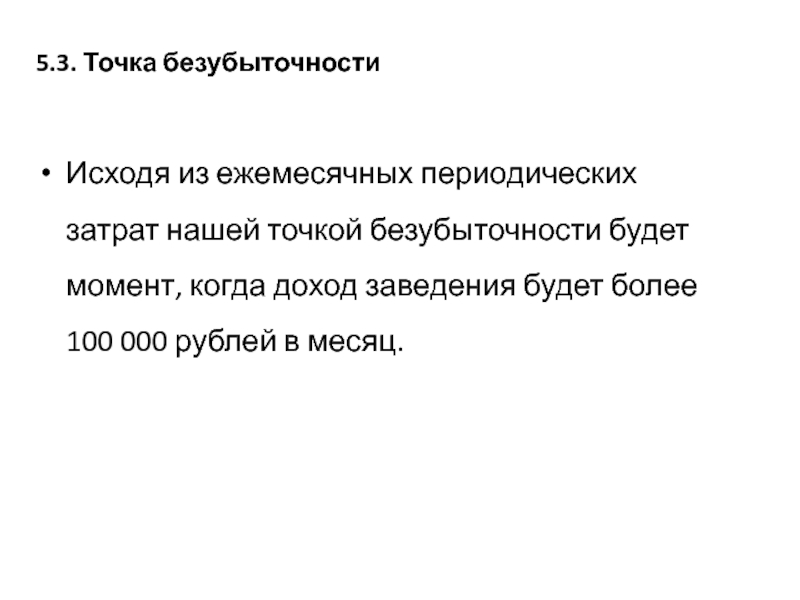 Слайд 435.3. Точка безубыточности