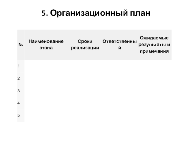 Организационный план;