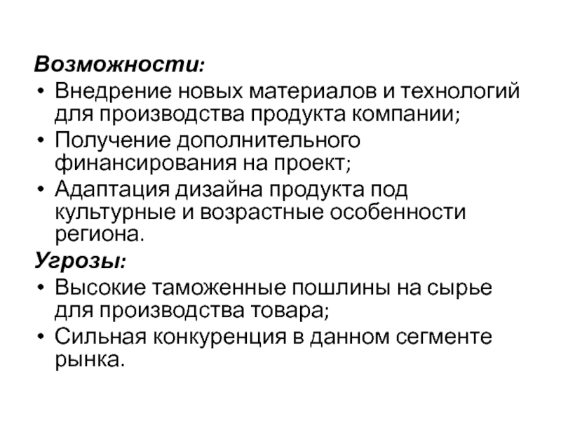 Opportunities – возможности;