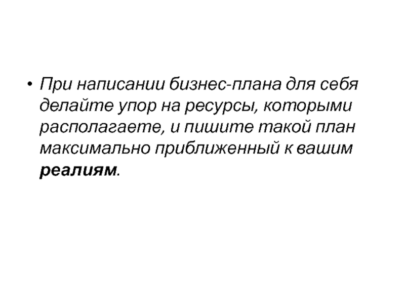 Слайд 6При написании бизнес-плана для себя делайте упор на ресурсы, которыми