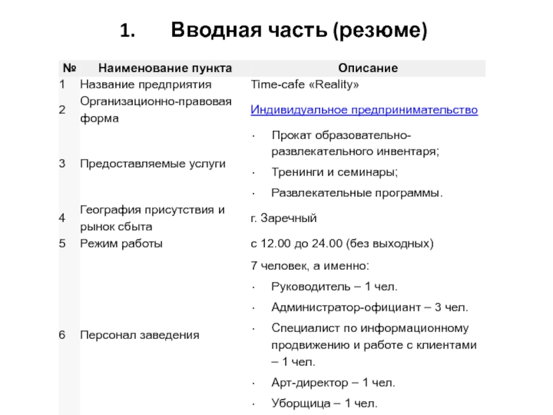 Слайд 141. Вводная часть (резюме)