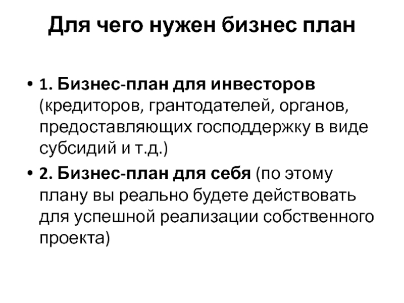Слайд 5Для чего нужен бизнес план