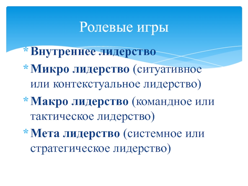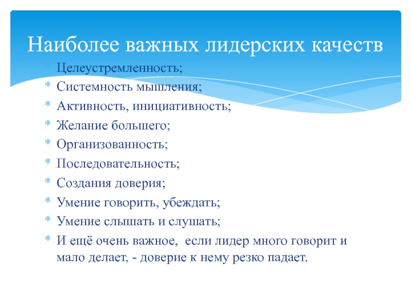 которое проявляется как управляющие действияЧлен группы, за которым она признаёт право принимать ответственные решения в значимых для нее ситуациях, то есть наиболее авторитетная личность, реально играющая центральную роль в организаций совместной деятельности и регулирований взаимоотношений в группе.