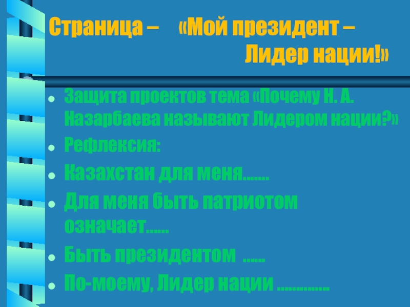 Защита проектов тема «Почему Н. А. Назарбаева называют Лидером нации?»