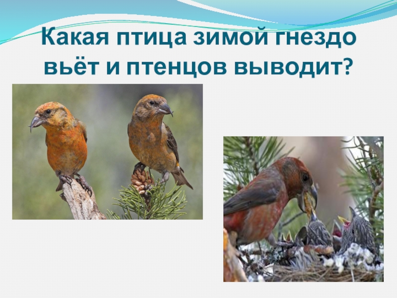 Слайд 13Какая птица зимой гнездо вьёт и птенцов выводит?