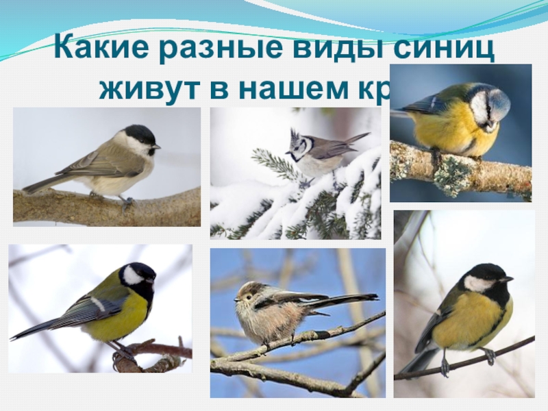 Слайд 12Какие разные виды синиц живут в нашем крае?