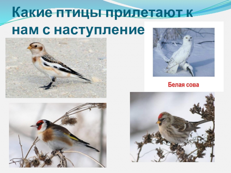 Слайд 10Какие птицы прилетают к нам с наступлением зимы?