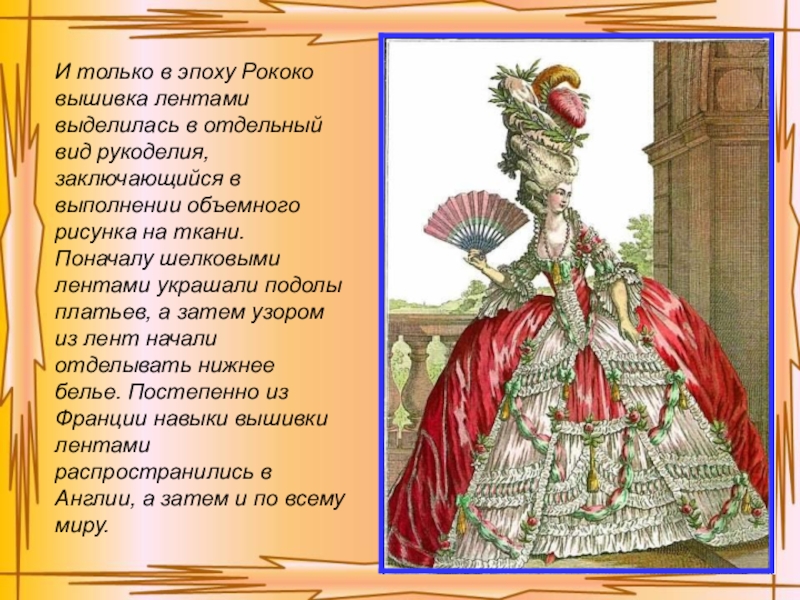 И только в эпоху Рококо вышивка лентами выделилась в отдельный