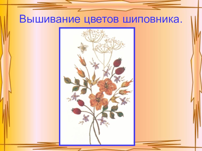 Для вышивки листьев у шиповника используйте шов «Петля».