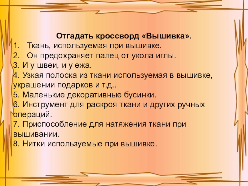 4. Узкая полоска из ткани используемая в вышивке, украшении подарков и т.д..