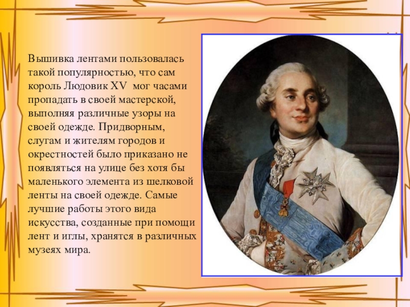 Вышивка лентами пользовалась такой популярностью, что сам король Людовик XV