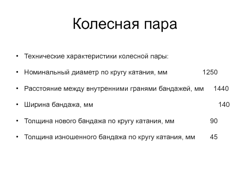 Технические характеристики колесной пары: