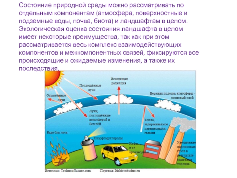 Слайд 3Состояние природной среды можно рассматривать по отдельным компонентам (атмосфера, поверхностные
