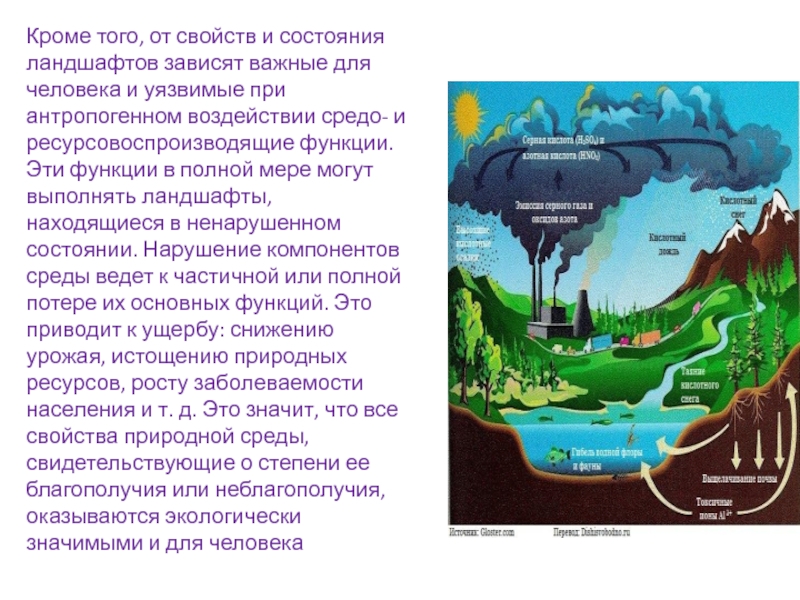 Слайд 4Кроме того, от свойств и состояния ландшафтов зависят важные для