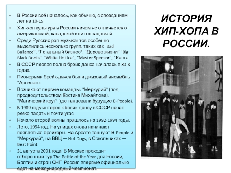 Слайд 4ИСТОРИЯ ХИП-ХОПА В РОССИИ.