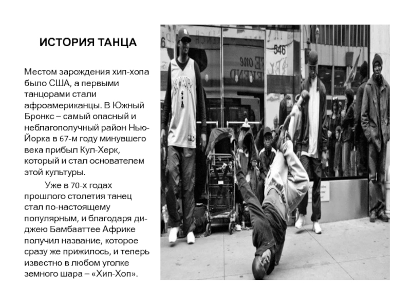 Местом зарождения хип-хопа было США, а первыми танцорами стали
