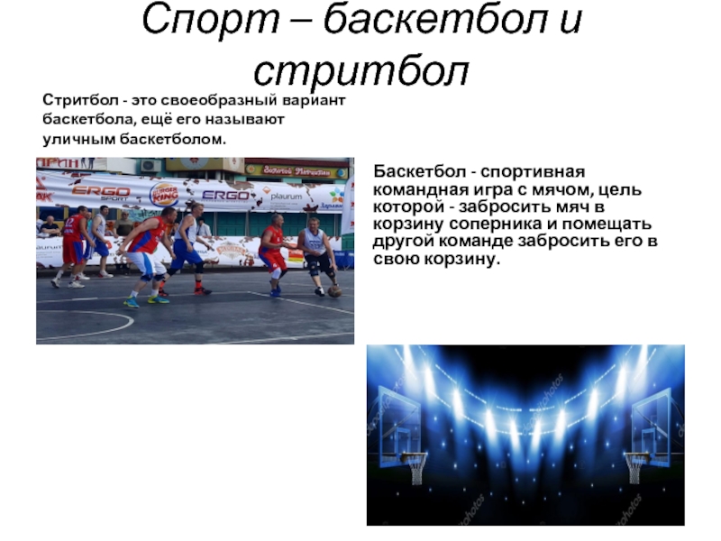 мячом, цель которой - забросить мяч в корзину соперника и помещать другой команде забросить его в свою корзину.