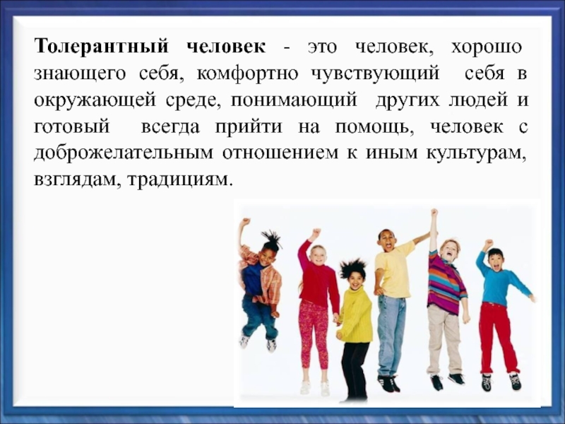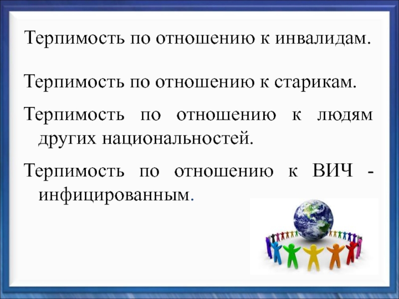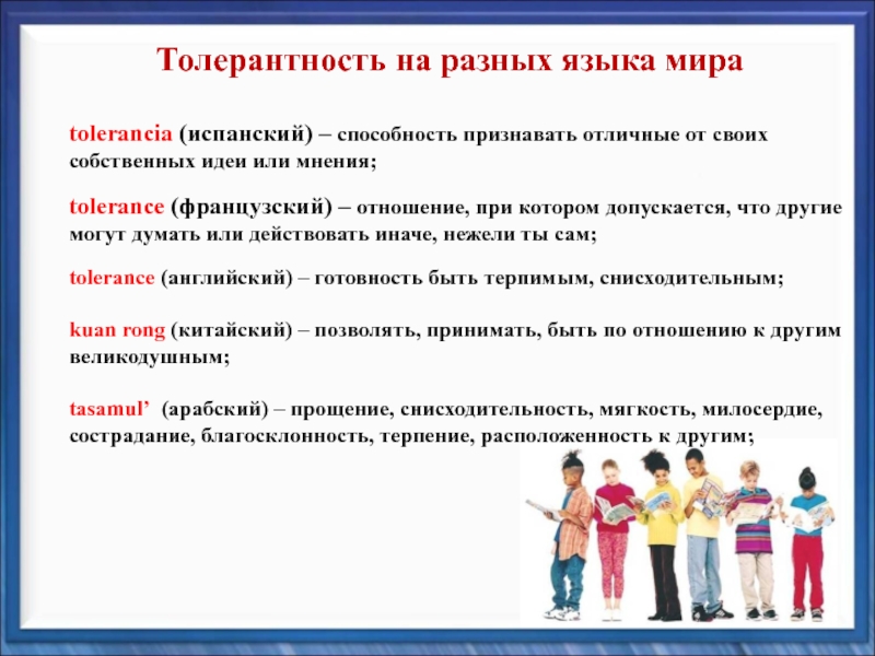 другие могут думать или действовать иначе, нежели ты сам; tolerance (английский) – готовность быть терпимым, снисходительным;